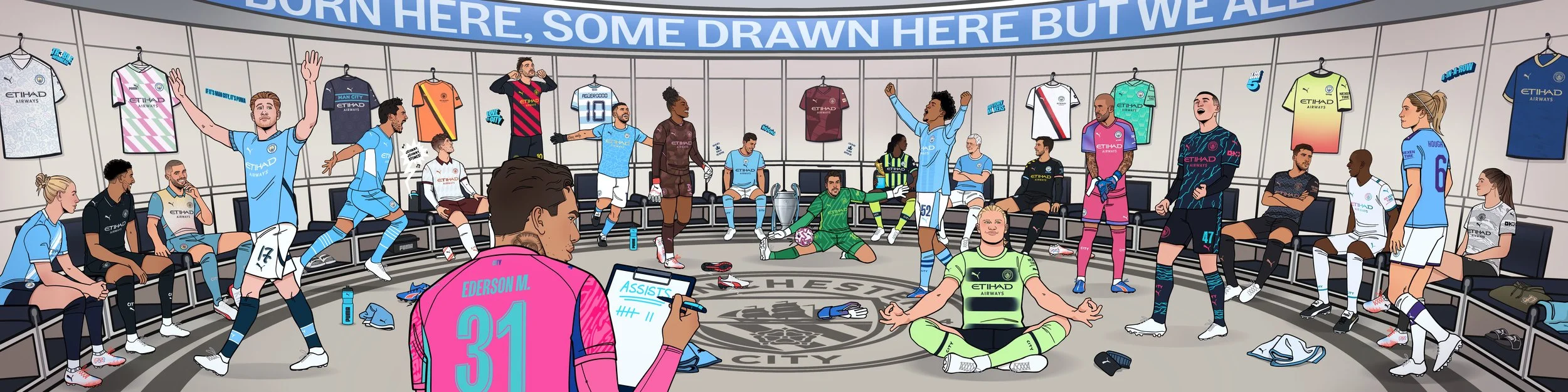 Various illustrations for use across social media channels and documentary productions for Manchester City Football Club
