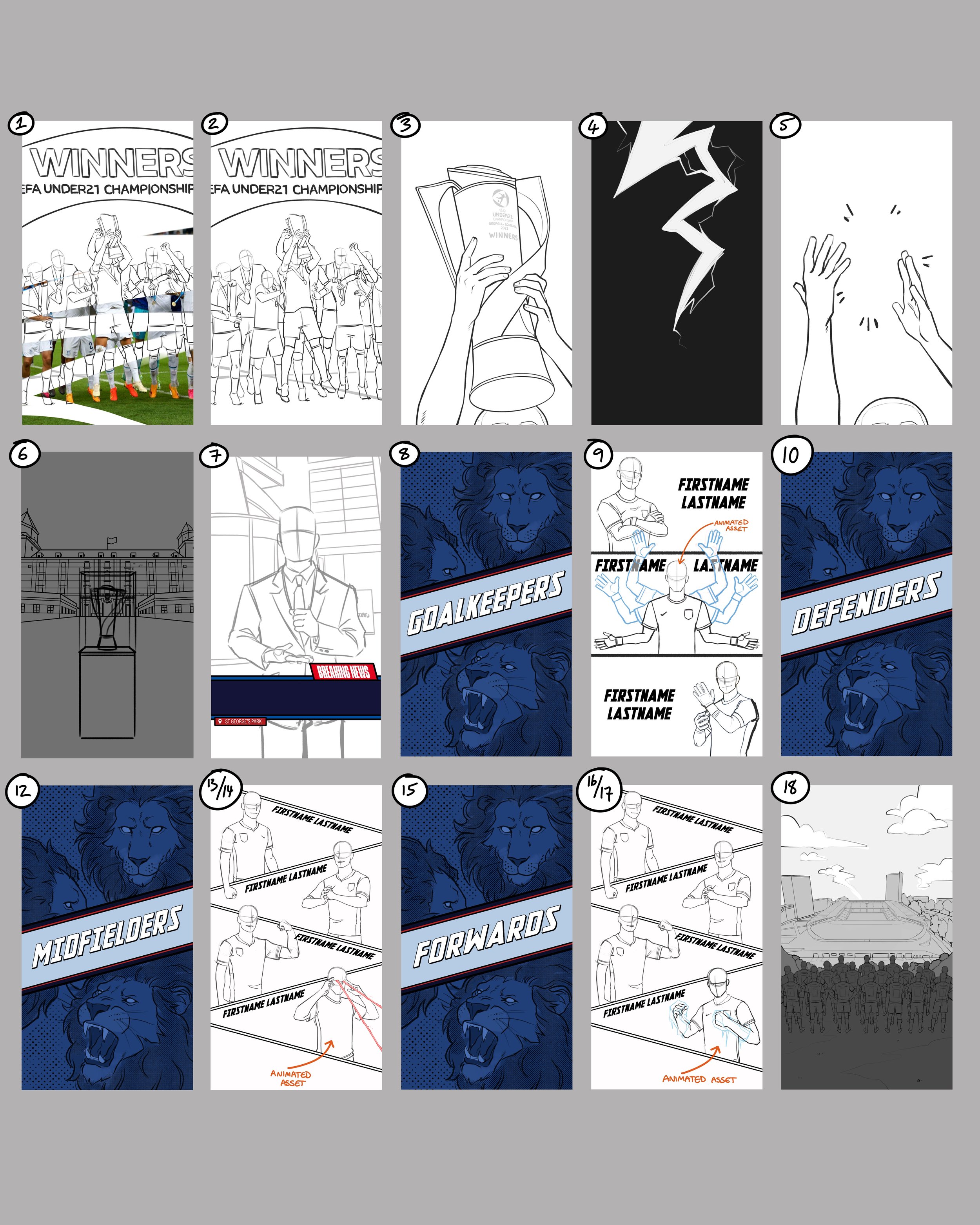 Provided illustrations and animations covering the entire U21 Euro campaign for the England team. This involved scripting, storyboarding, animation, motion graphics, composting, and sound design for 3 videos throughout the tournament.